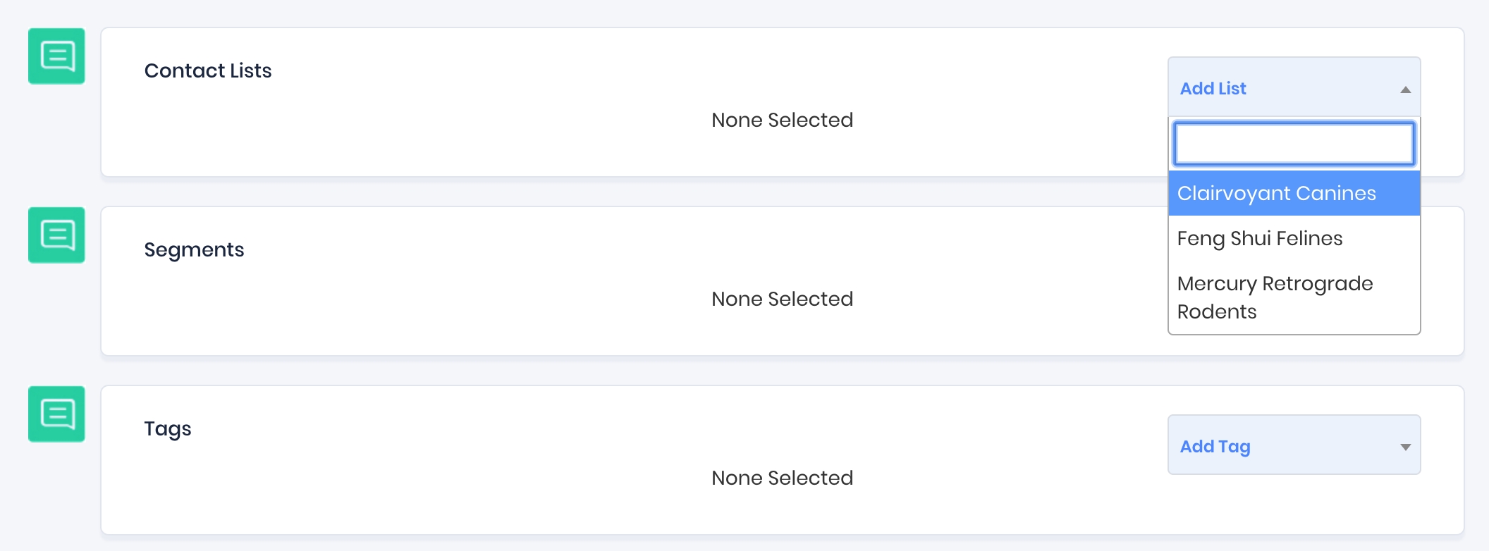 Use the drop down to select the contact lists, segments, and tagged contacts you want to receive this broadcast.