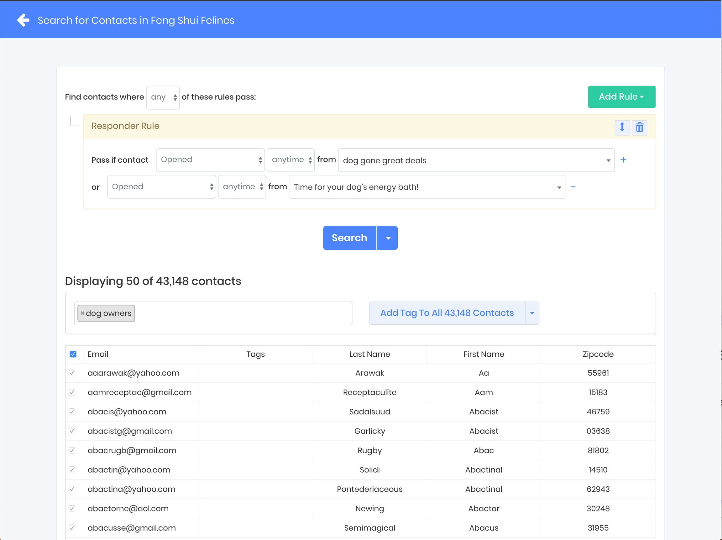 2. Tag your contacts from the contacts search page to add them to a funnel