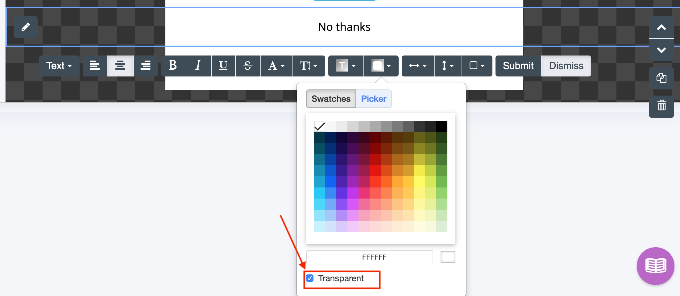 Set the button’s background color to match the background by checking the transparency box at the bottom of the widget