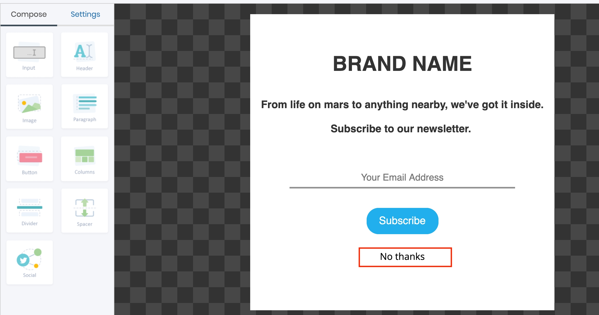 You can make your form dismiss/form close button appear to the visitor as text instead of a button.