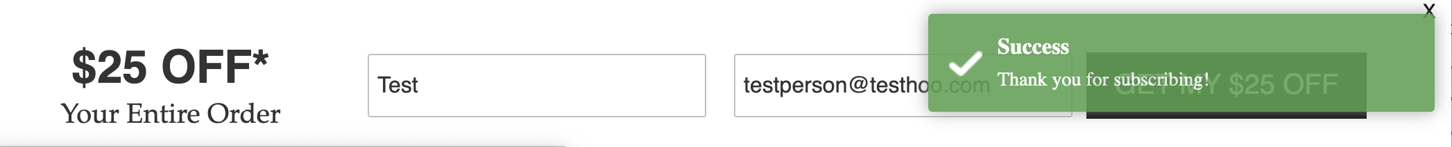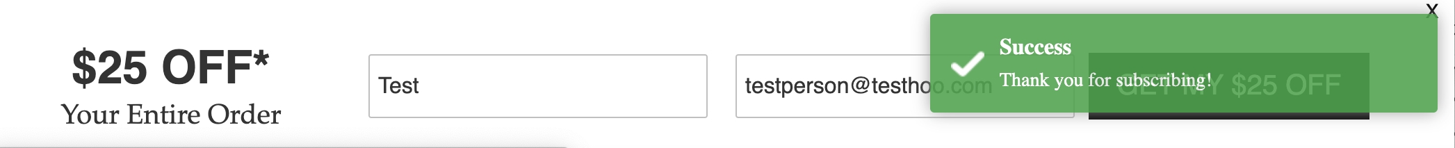 Once a subscriber has opted in to your form, they will be shown a thank you message as a small green alert like this
