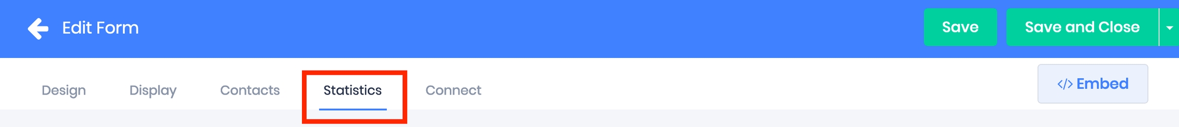 Click on the statistics tab in your form to see your views, conversions, and conversion rate for desktop, mobile, and tablet
