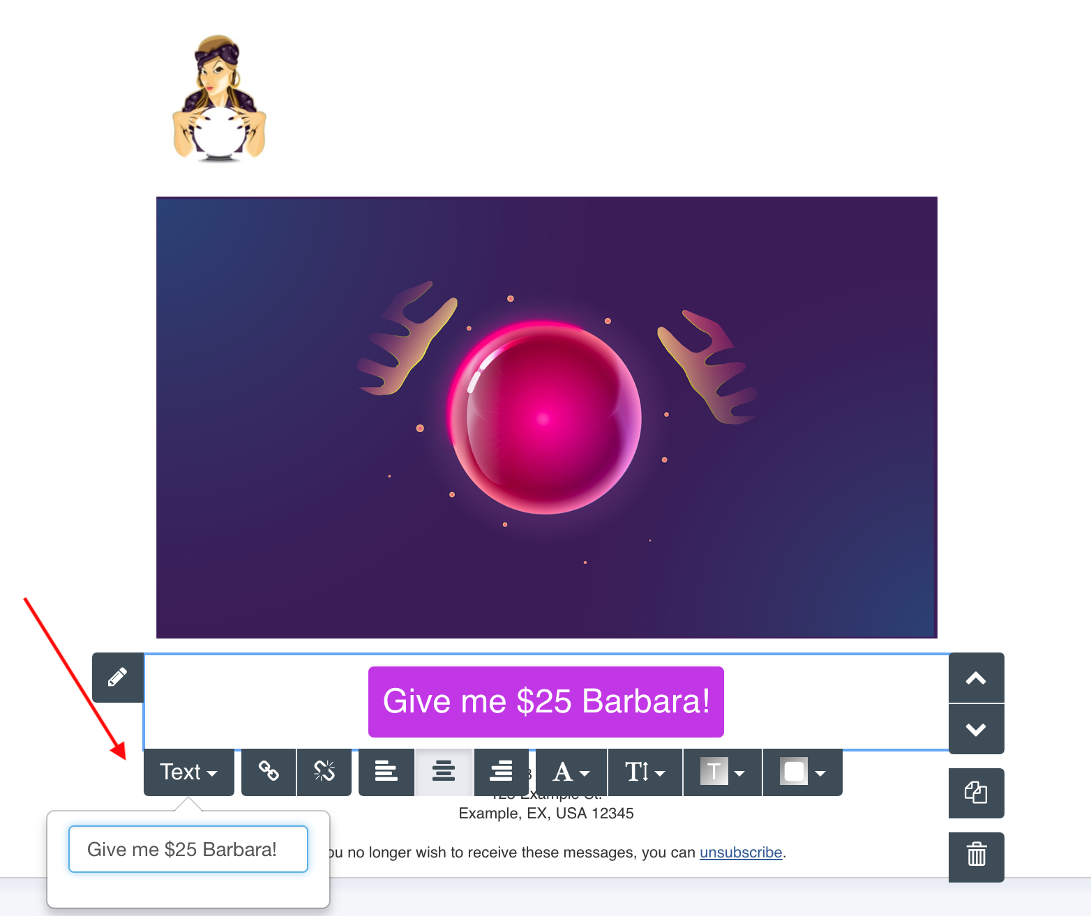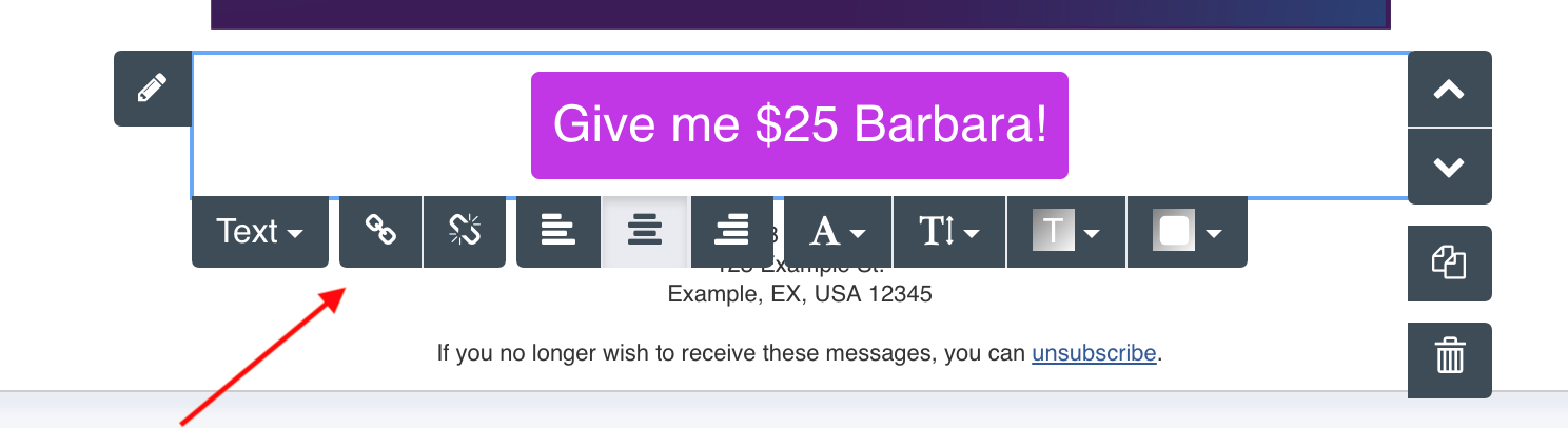 Click the text icon and make the button's wording specific to the action being accomplished instead of something generic like "Click Here" .