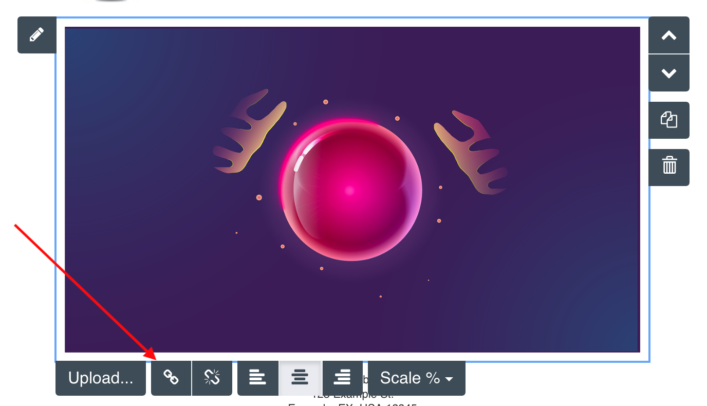 Add a hyperlink to an image by clicking on the link icon and dropping in a URL.